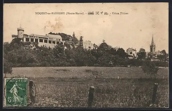 AK Nogent-en-Bassigny /Haute-Marne, Usine Thinet et vue sur la campagne environnante