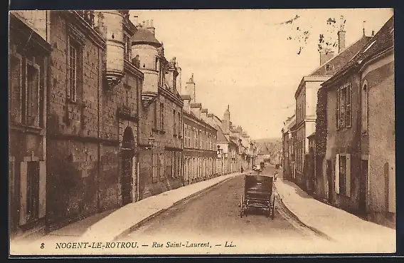 AK Nogent-le-Rotrou, Rue Saint-Laurent avec calèche