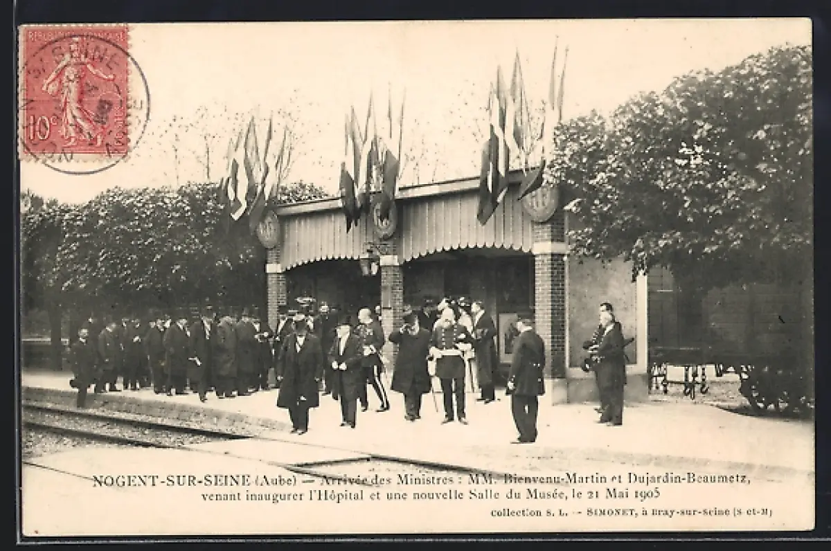 AK Nogent-sur-Seine /Aube, Arrivée des Ministres pour l`inauguration de l`Hôpital et du Musée, 21 Mai 1905