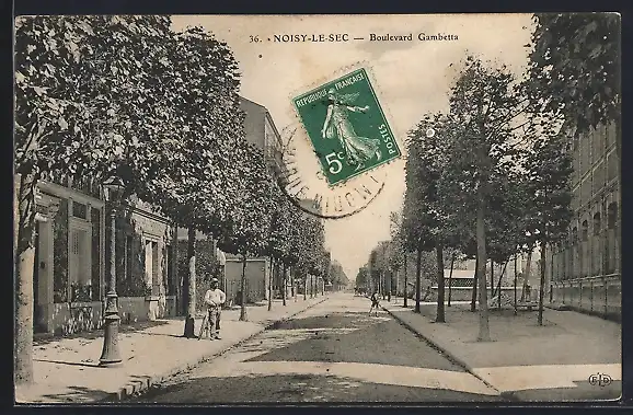 AK Noisy-le-Sec, Boulevard Gambetta avec arbres alignés et passants