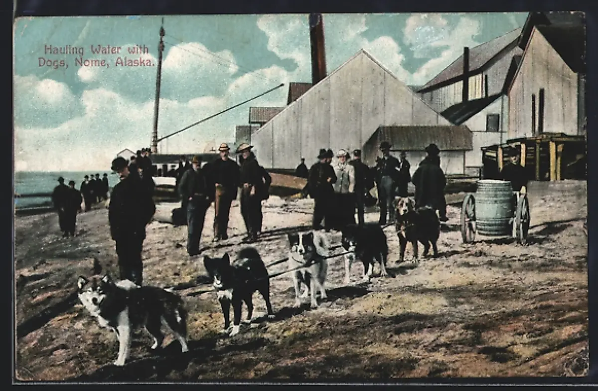 AK Nome, AK, Hauling Water with Dogs