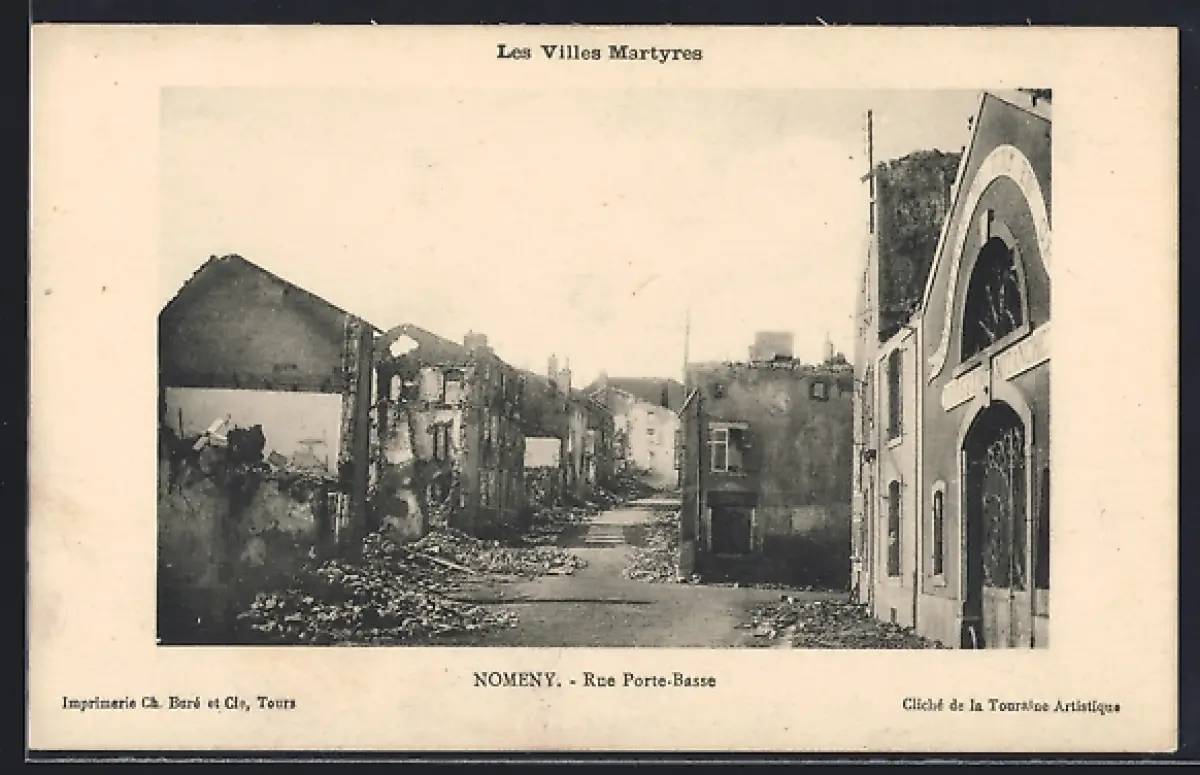 AK Nomeny, Rue Porte-Basse dans les ruines des Villes Martyres