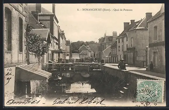 AK Nonancourt, Quai de Puteaux et vue du canal avec maisons alignées