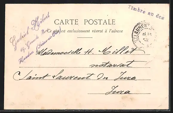 Personenbezogene Daten auf der Rückseite der Karte wurden durch blauen Textmarker unkenntlich gemacht. Die blauen Stellen sind auf die Vorderseite durchgeweicht und wirken sich negativ auf das Postkartenfoto aus