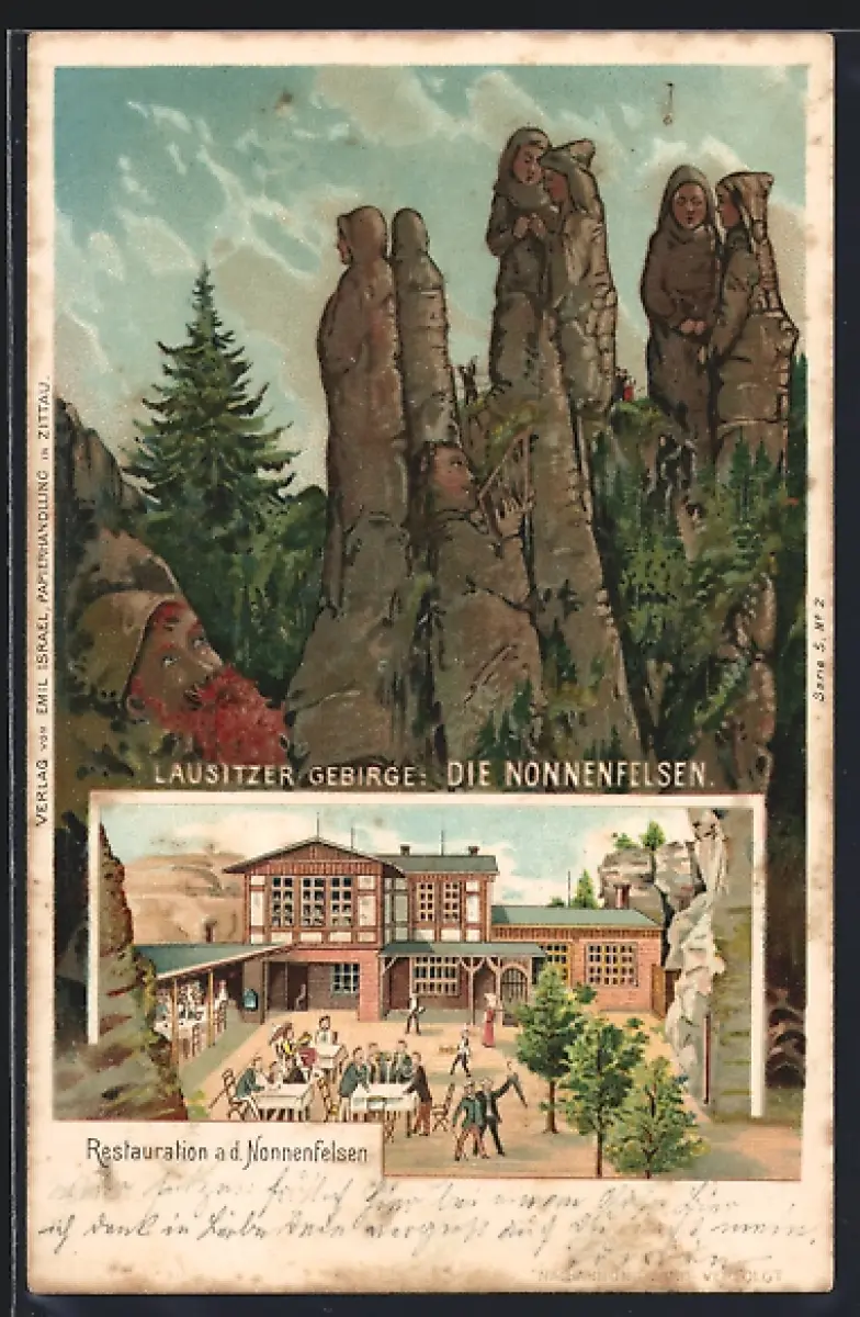 AK Nonnenfelsen, Restauration, Berg mit Gesicht / Berggesichter