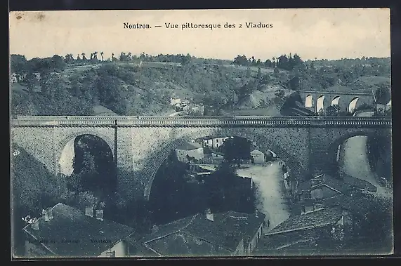 AK Nontron, Vue pittoresque des 2 Viaducs