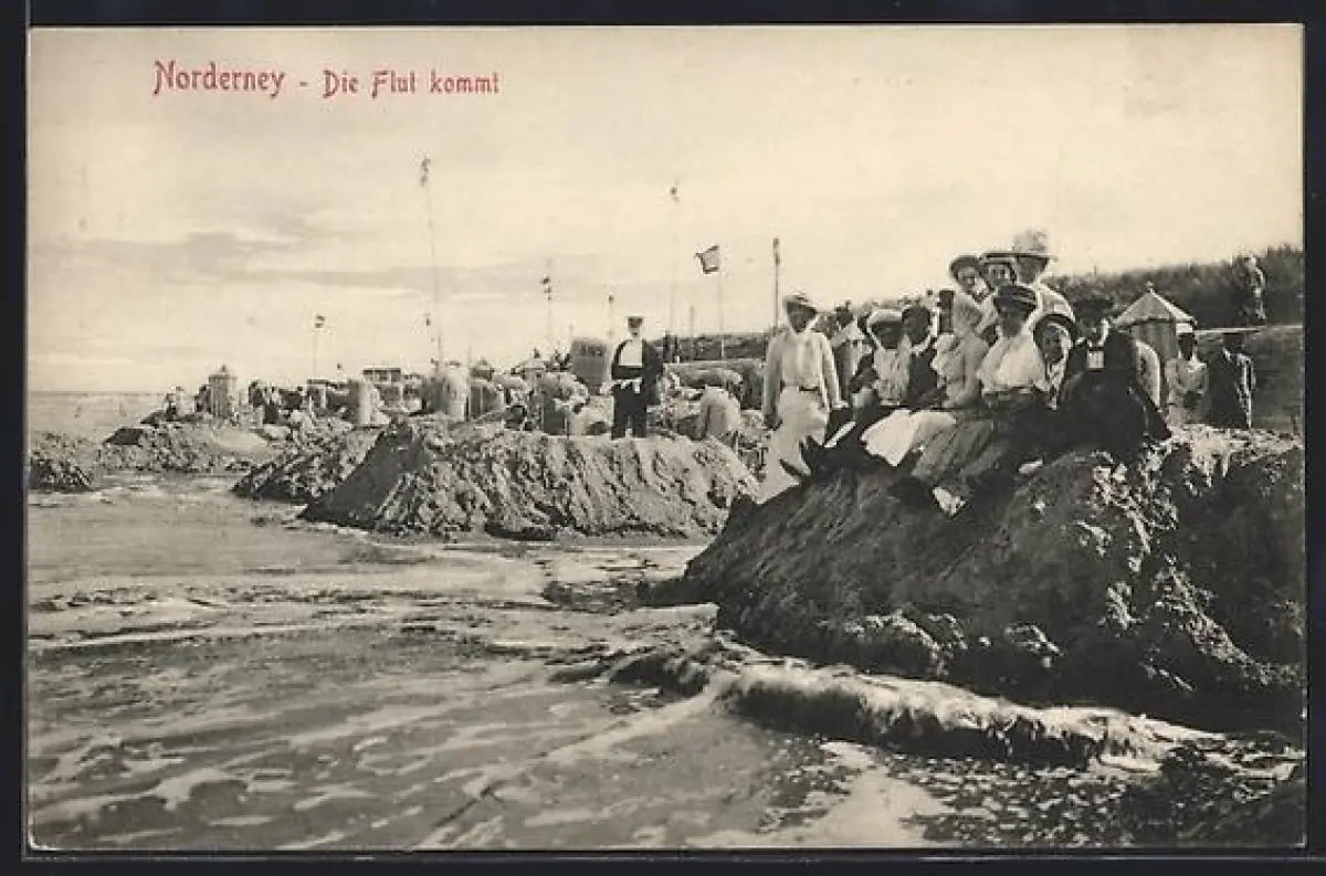 AK Norderney, Die Flut kommt, Strand mit Badegästen