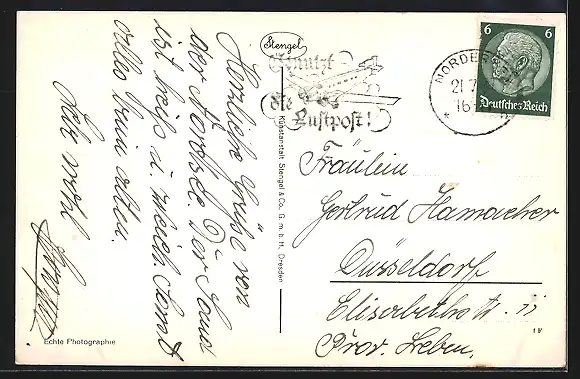 alte Ansichtskarte, gelaufen 1937, Stempelspur, guter Zustand