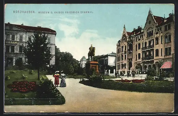AK Nordhausen, Teilansicht mit Museum und Kaiser Friedrich-Denkmal