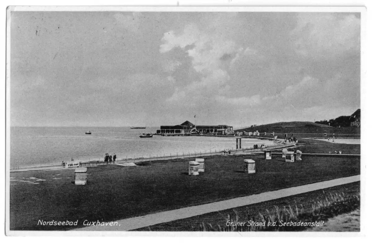 Ansichtskarte Nordseebad Cuxhaven Grüner Strand bei der Seebadeanstalt Erhaltung I-II postalisch gelaufen, gestempelt: Cuxhaven 1, 5.7.31 Verlag: Photo Thode, Nordseebad Cuxhaven Im Inland erfolgt die Zusendung versandkostenfrei Auslandsversand erfolgt über
