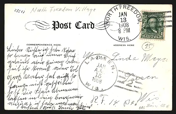 alte Ansichtskarte, gelaufen 1908, Eckknicke oben, guter Zustand