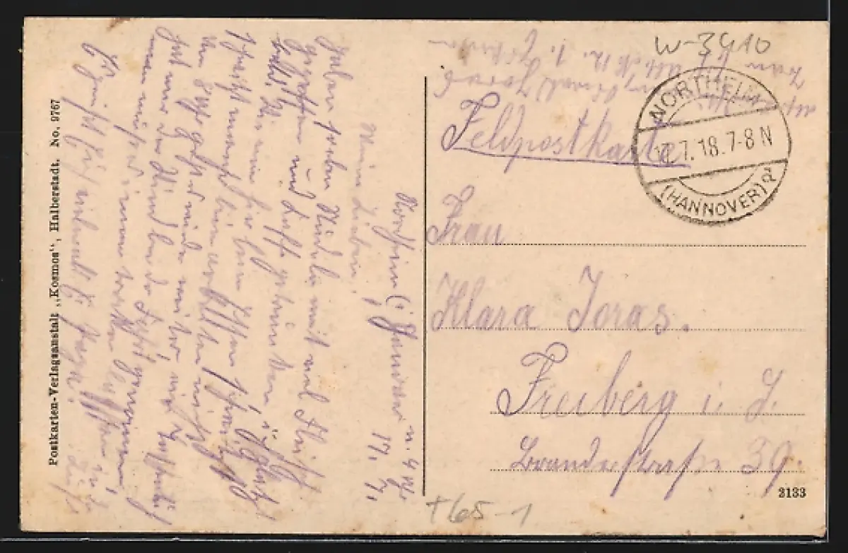 alte Ansichtskarte, gelaufen 1918 als Feldpost, guter Zustand