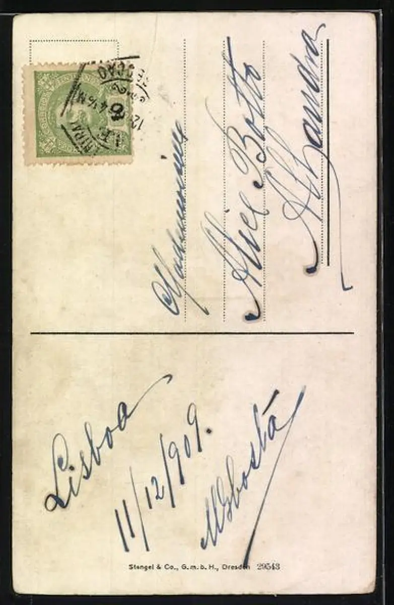 alte Ansichtskarte, gelaufen, Bugspur oben mittig, guter Zustand