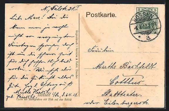 alte Ansichtskarte, gelaufen 1912, guter Zustand