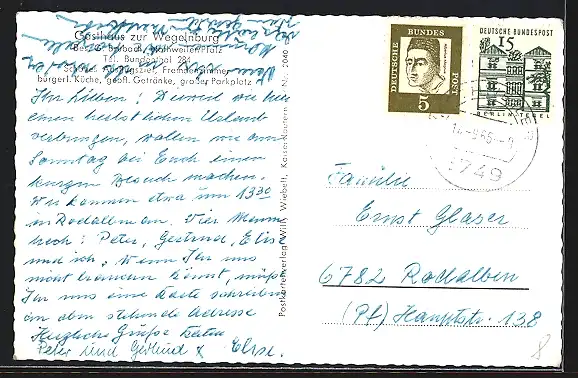 alte Ansichtskarte, gelaufen 1966, Bugspur re. vertikal, guter Zustand