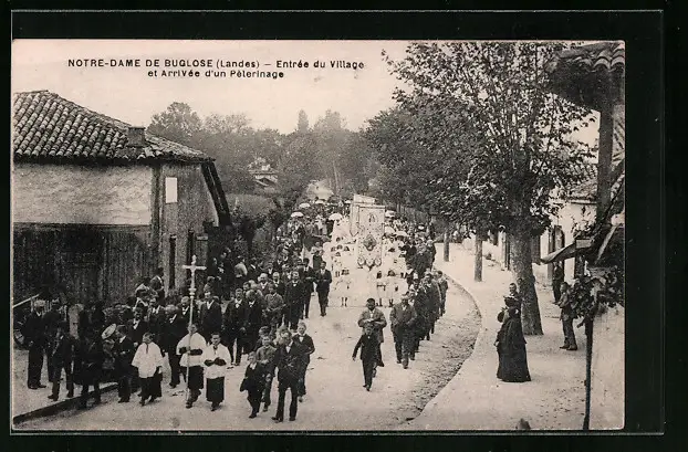 AK Notre-Dame-de-Buglose, Entrée du Village et Arrivée d'un Pèlerinage