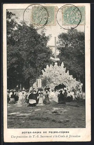 AK Notre-Dame de Prime-Combe, Une procession du T.-S. Sacrement à la Croix de Jérusalem