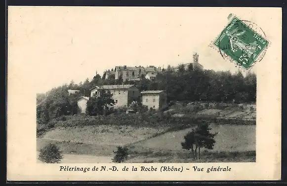 AK Notre-Dame de la Roche, Vue générale du pèlerinage (Rhône)