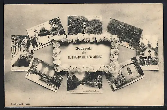 AK Notre-Dame-des-Anges, Collage de vues avec fleurs et paysages environnants