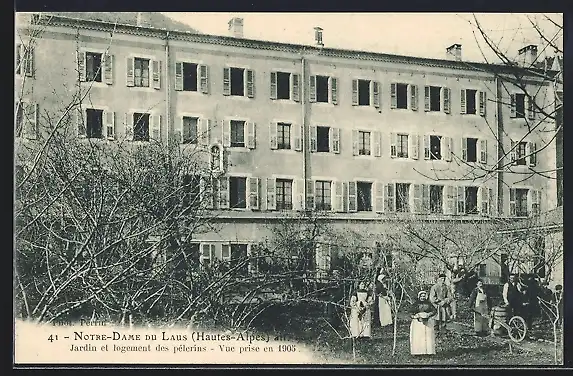 AK Notre-Dame du Laus, Jardin et logement des pélerins, vue prise en 1903