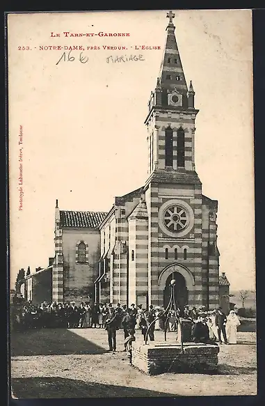 AK Notre-Dame, près Verdun, L`Église et mariage devant l`entrée