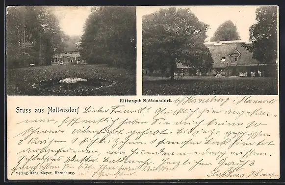 AK Nottensdorf, Rittergut mit Anlage, Vorder- u. Rückansicht
