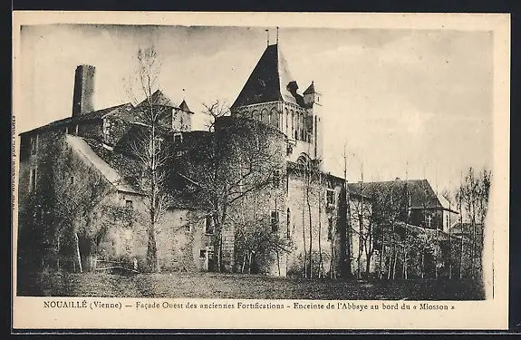 AK Nouaillé, Facade Ouest des anciennes Fortifications, Enceinte de l`Abbaye au bord du Miosson