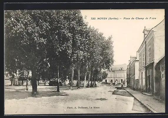 AK Noyen, Place du Champ de Foire avec rangée d`arbres et bâtiments adjacents