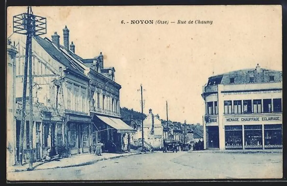 AK Noyon /Oise, Rue de Chauny avec bâtiments et commerces