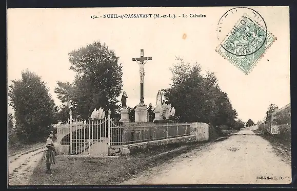 AK Nueil-sur-Passavant, Le Calvaire et la route adjacente