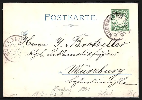 gelaufen 1901, Eckknick re. unten, guter Zustand