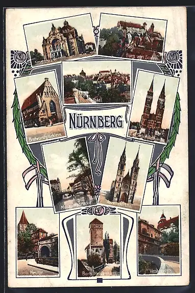AK Nürnberg, Bratwurstglöcklein, Sebalduskirche, Lorenzkirche, Museumsbrücke