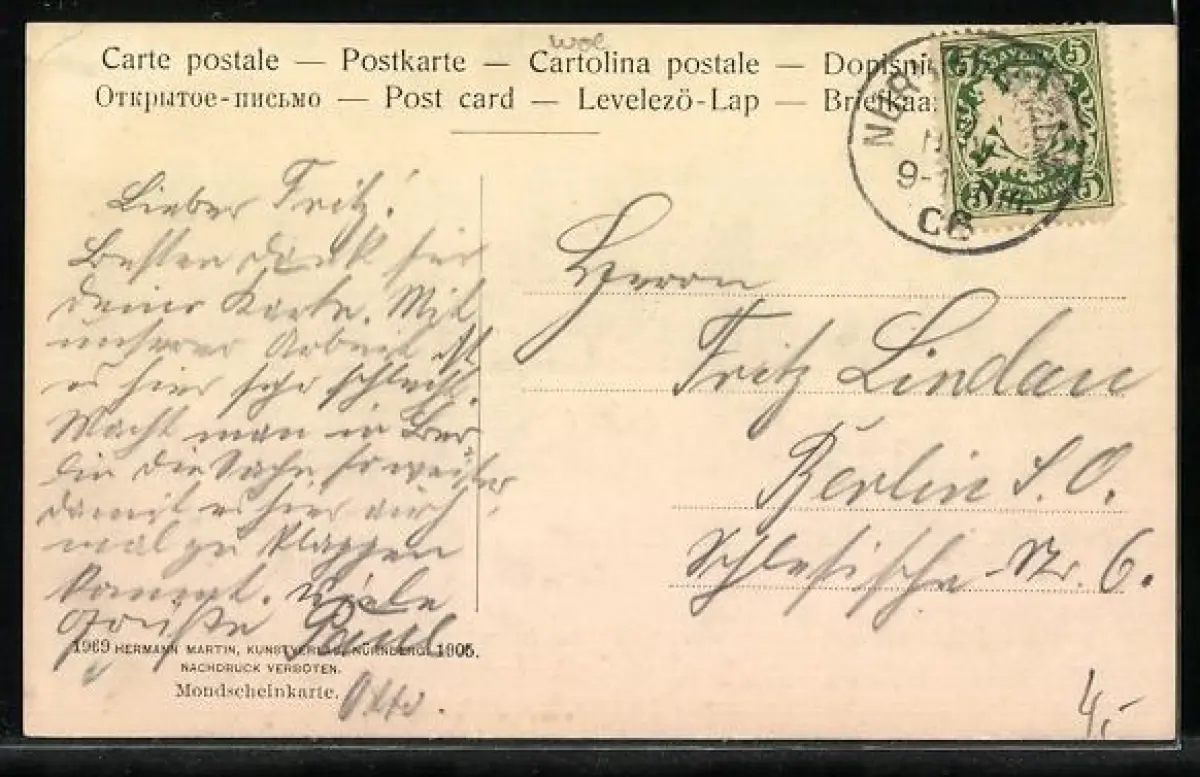 alte Ansichtskarte, gelaufen 1906, Eckknick re. oben, guter Zustand