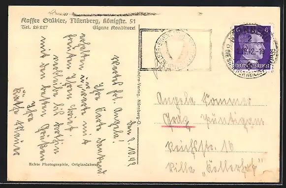 AK Nürnberg, Café-Conditorei Stübler, Königstrasse 51, Gaststube