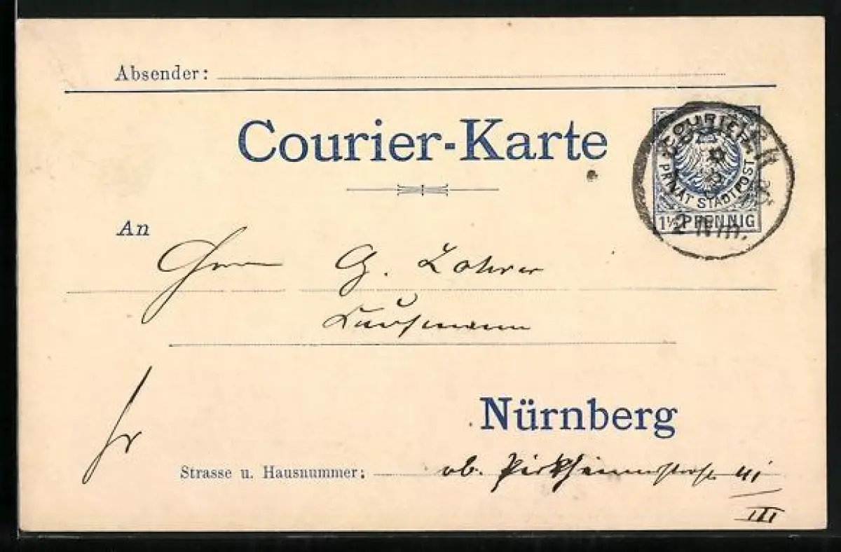 AK Nürnberg, Courier-Karte, Ganzsache, Private Stadtpost