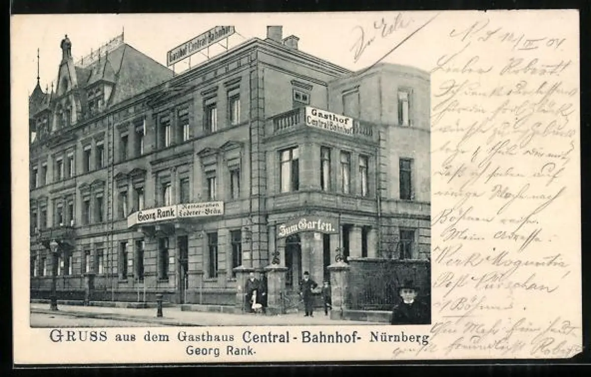 AK Nürnberg, Gasthaus Central-Bahnhof Georg Rank mit Garteneingang
