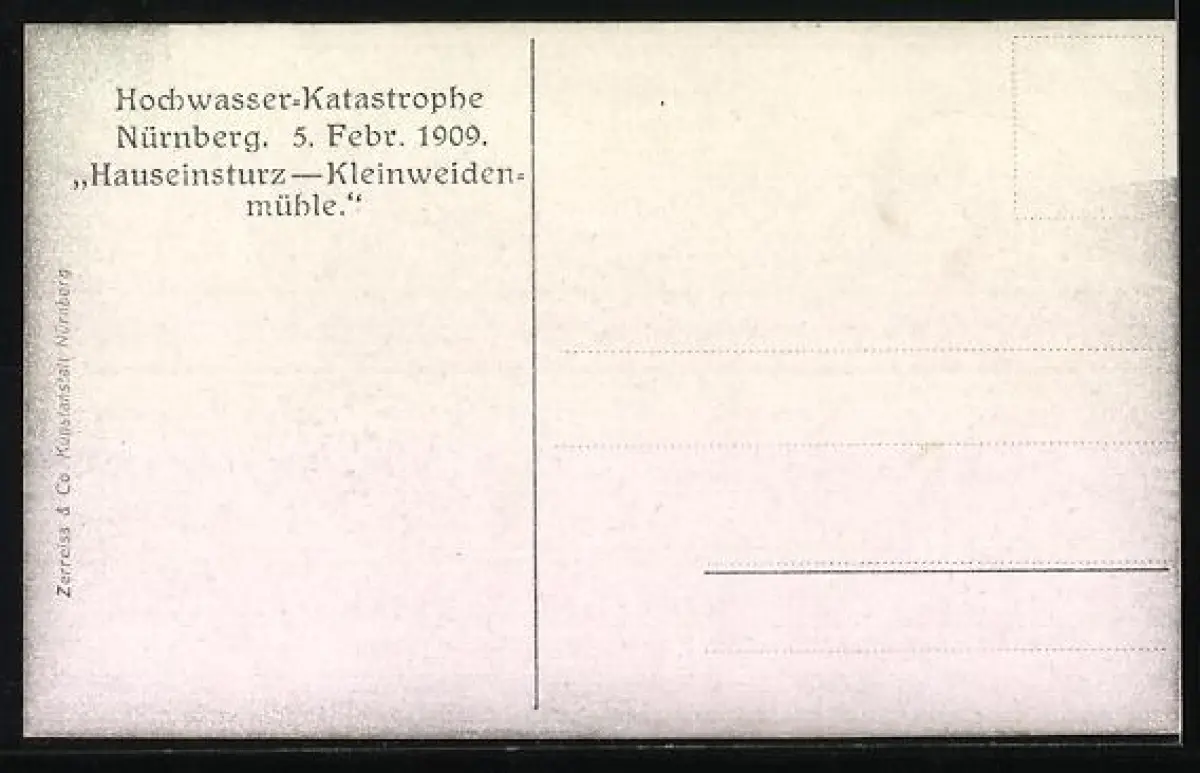AK Nürnberg, Hochwasser-Katastrophe 5.2.1909, Hauseinsturz Kleinweidenmühle