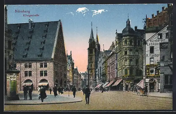 AK Nürnberg, Königsstrasse mit Handlung von H. Haeber