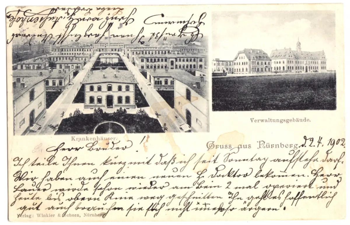 postalisch gelaufen, gestempelt: Nürnberg 2, 3. Apr. 02