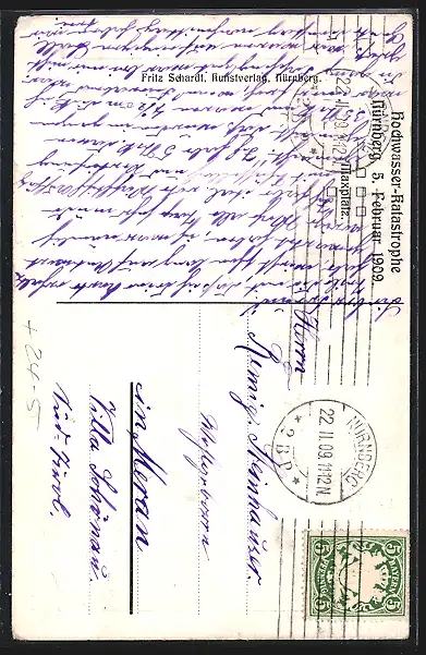 alte Ansichtskarte, gelaufen 1909, Eckknick re. oben, guter Zustand