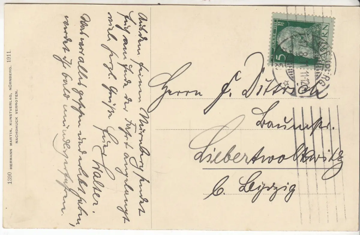 Hermann Martin, 1911. Karte, 14,0 x 9,0 cm