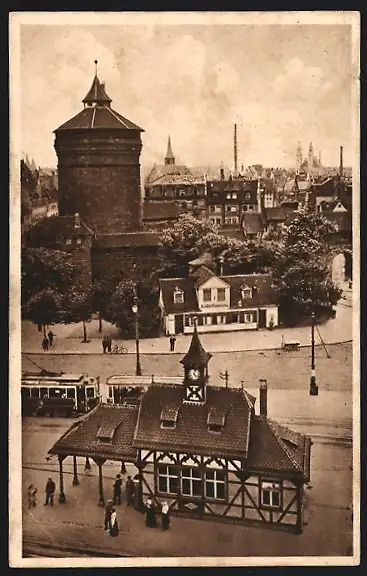 AK Nürnberg, Plärrer-Panorama mit Strassenbahn