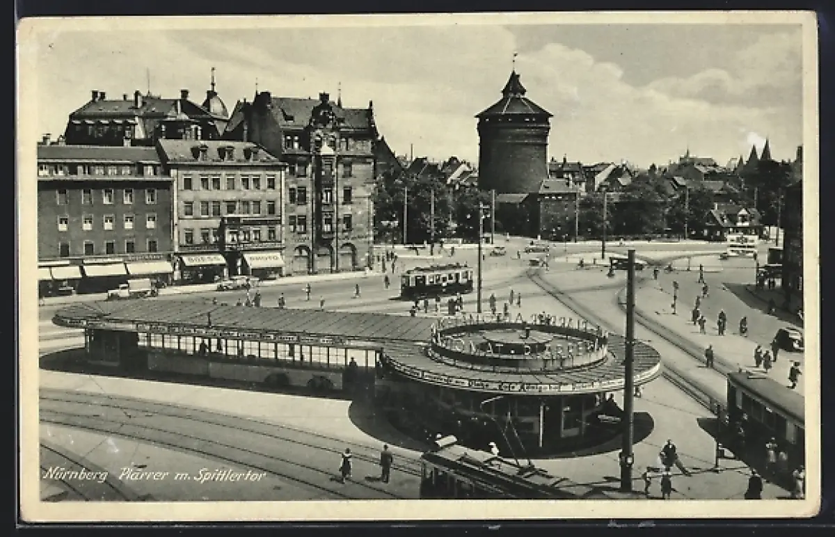 AK Nürnberg, Plärrer mit Spittlertor, mit Strassenbahnen