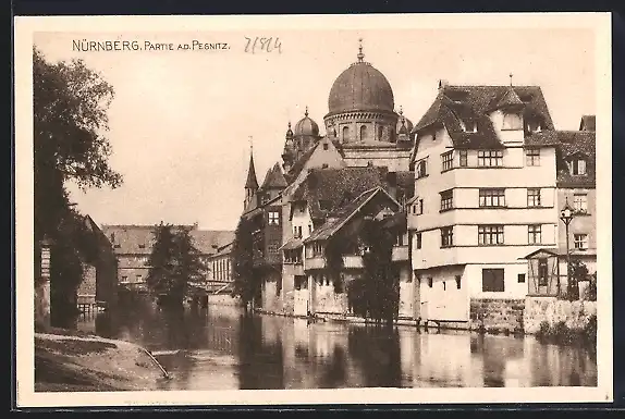 AK Nürnberg, Synagoge mit Partie an der Pegnitz