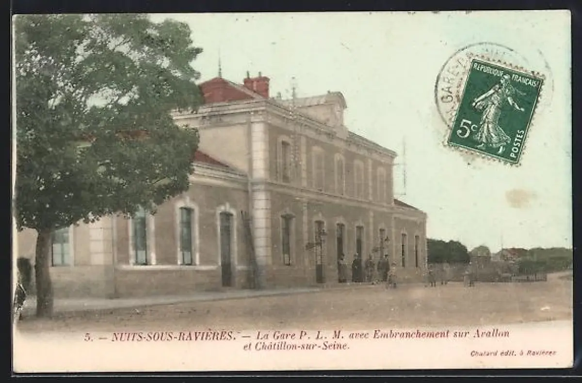 AK Nuits-sous-Ravières, La Gare P.L.M., Bahnhof