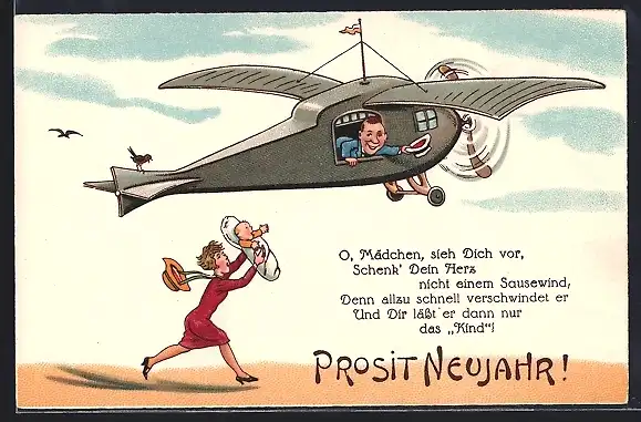 AK O, Mädchen, sieh Dich vor..., Mann im Flugzeug flieht vor Frau mit Kind