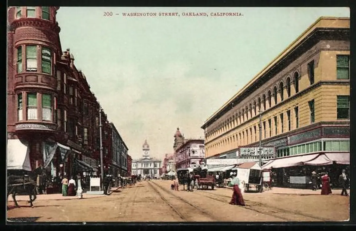 AK Oakland, CA, Washington Street with people and carriages