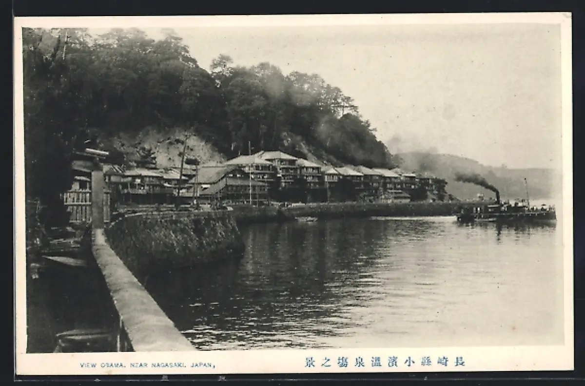 AK Obama /Nagasaki, Uferpanorama mit Dampfer