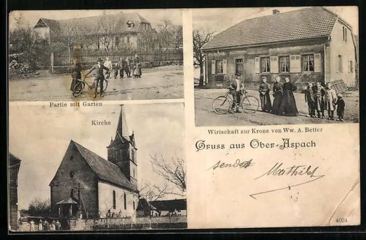 AK Ober-Aspach, Gasthof zur Krone, Kirche