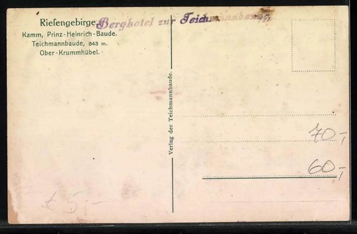 AK Ober-Krummhübel, Berghotel zur Teichmannbaude im Riesengebirge